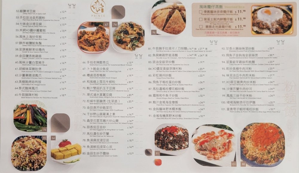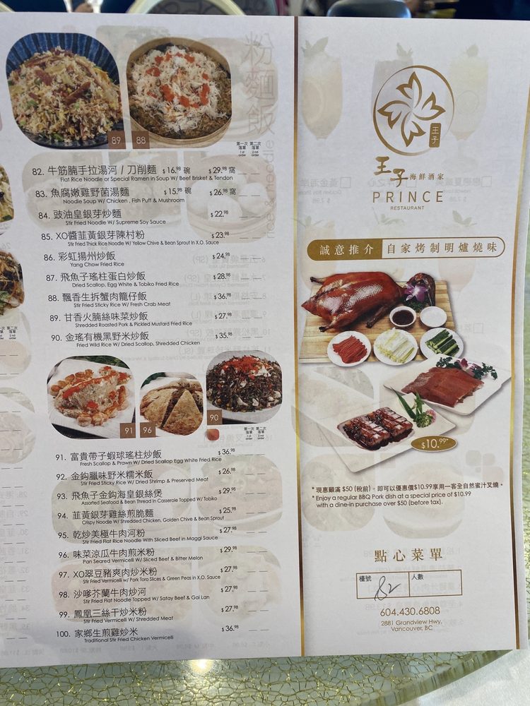 Introducing the menu at Prince Seafood Restaurant, nestled in the heart of Vancouver, is an exciting exploration of coastal and culinary delights. This vibrant eatery specializes in a variety of seafood dishes that captivate the palate. Signature offerings include the exquisite Sautéed Fish Maw Sea Cucumber with Leek in Supreme Soy Sauce and the Baked Lobster with Cheese. For the adventurous, the Pan Fried Wild Sea Cucumber and Stir Fried Shark Fin with Egg Fresh Crab Meat provide a taste of luxury. Not just seafood, the menu embraces flavorful marinated and baked chicken options, alongside creatively crafted tofu dishes like the Deep Fried Seven Spices Crispy Tofu.
